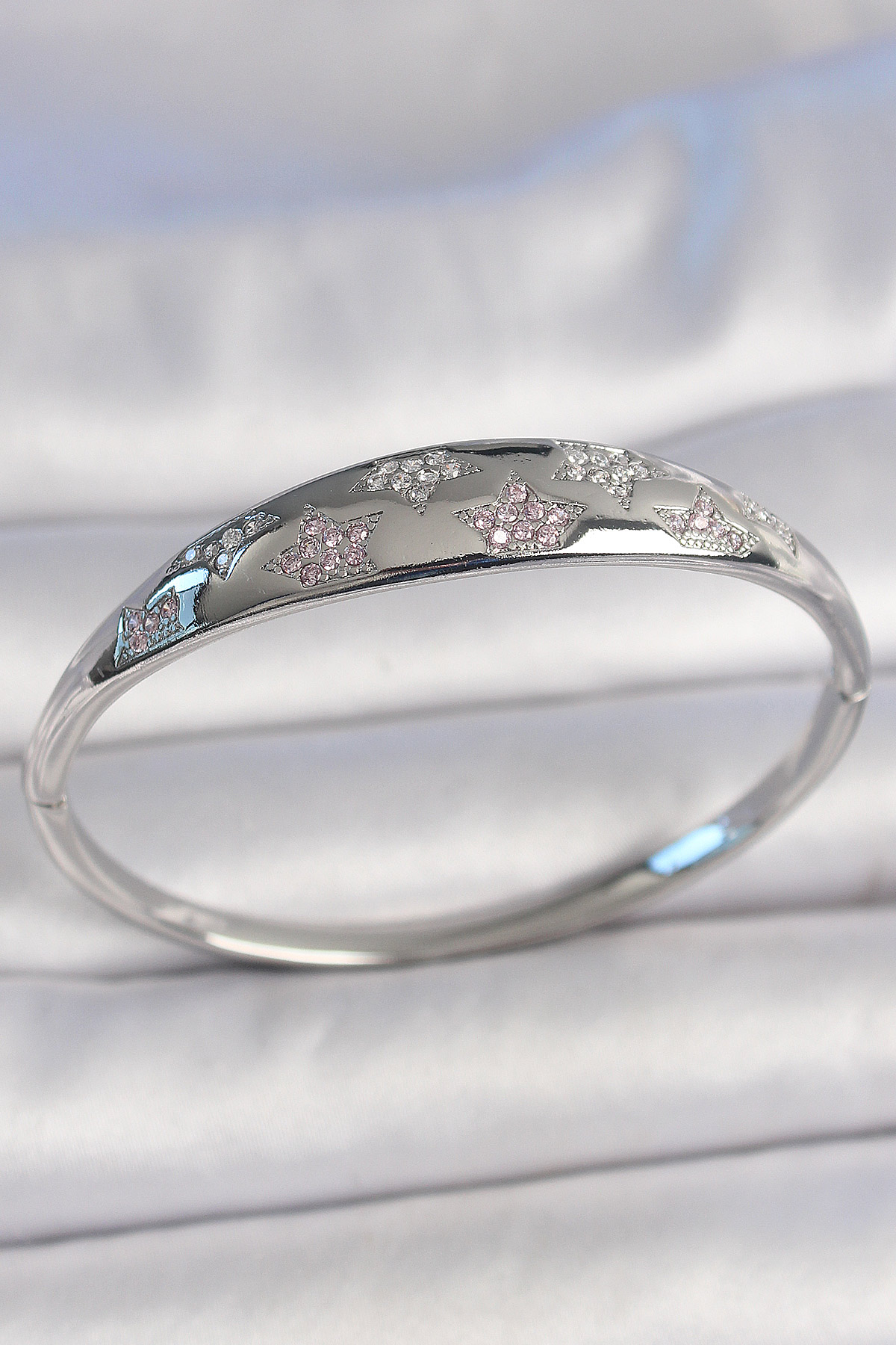 Pirinç Gümüş Renk Zirkon Taşlı Yıldız İşlemeli Kadın Kelepçe - 261903