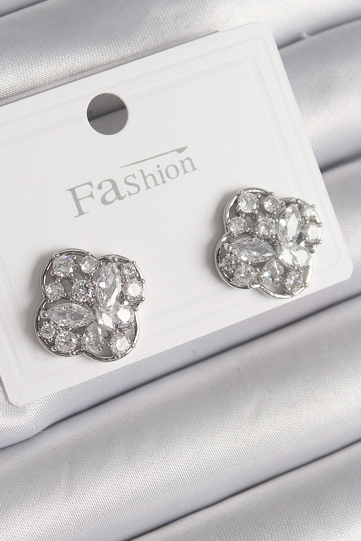 Pirinç Gümüş Renk Zirkon Taşlı Yonca Model Kadın Küpe - 259309