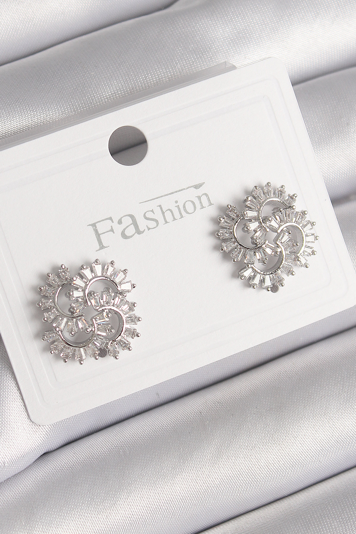 Pirinç Gümüş Renk Zirkon Taşlı Yonca Model Kadın Küpe - 259337