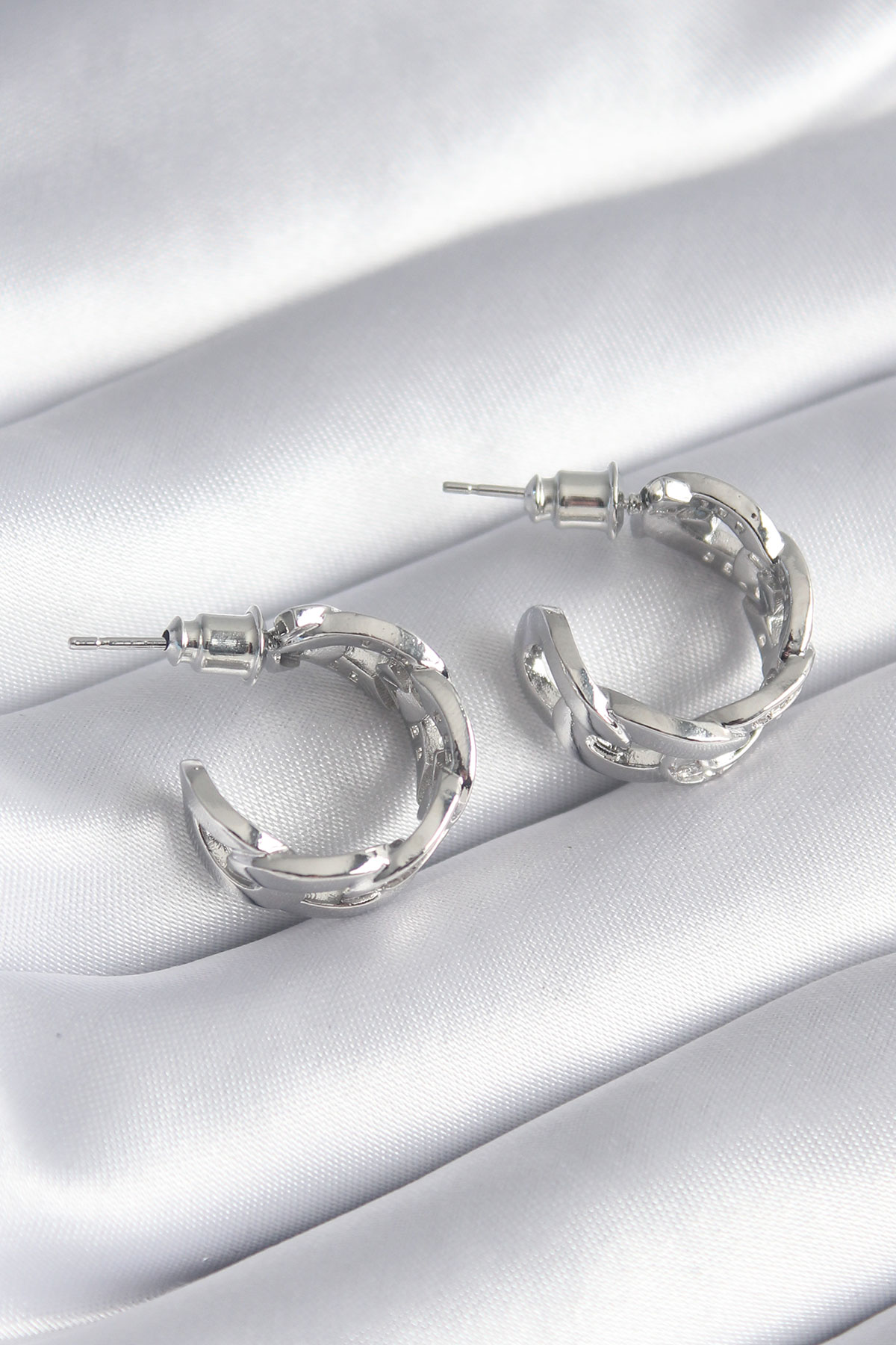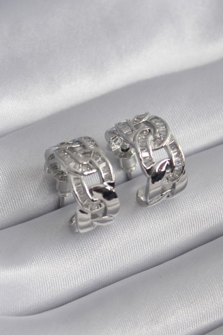 Pirinç Gümüş Renk Zirkon Taşlı Zincir Model Kadın Küpe - 253215