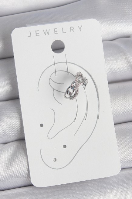 Pirinç Gümüş Renk Zirkon Taşlı Zincir Sonsuzluk Model Kadın Kıkırdak Küpe - 262572