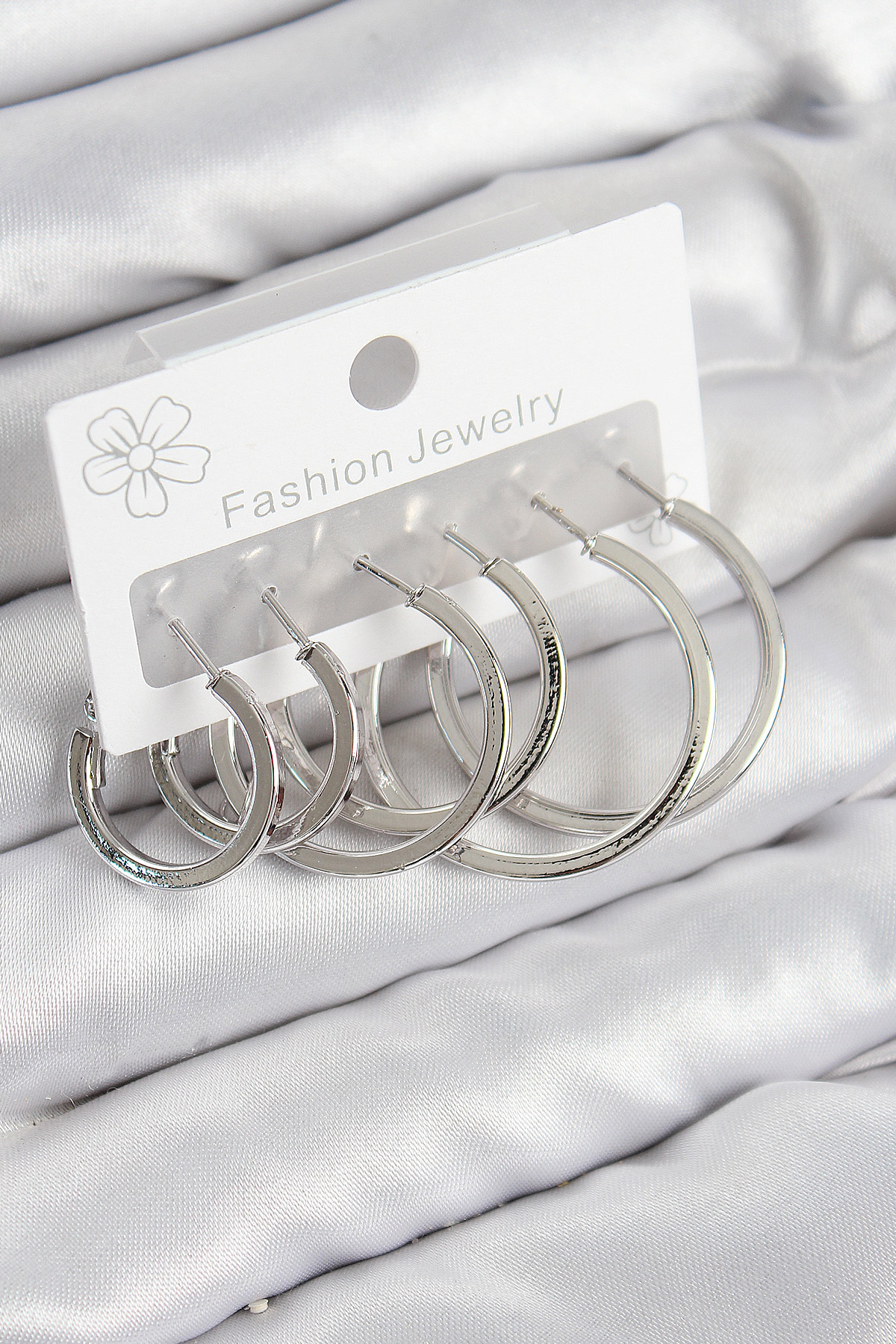 Pirinç Halka Model Gümüş Renk Kadın Set Küpe - 264601