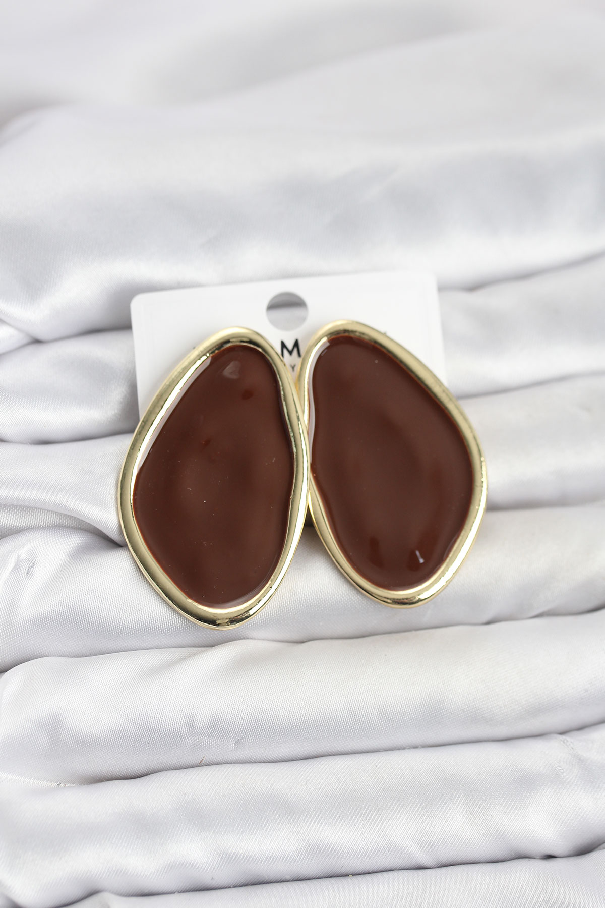 Pirinç Kahverengi Mineli Damla Model Vintage Plaka Kadın Küpe - 266934