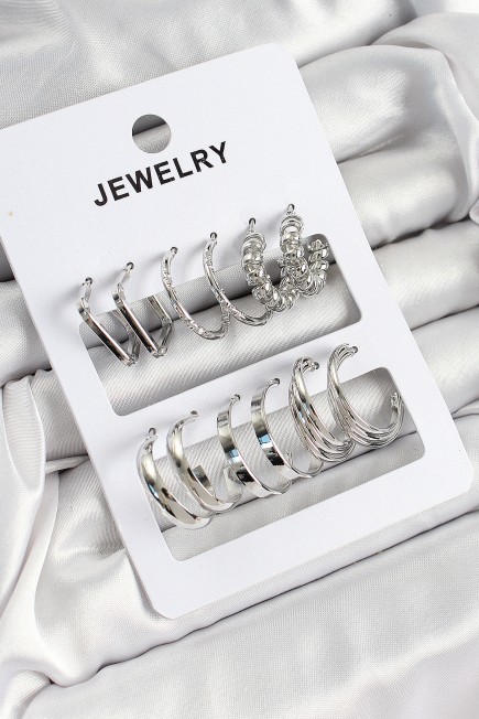 Pirinç Karışık Halka Model Gümüş Renk 6 Çift Kadın Küpe Set - 264142