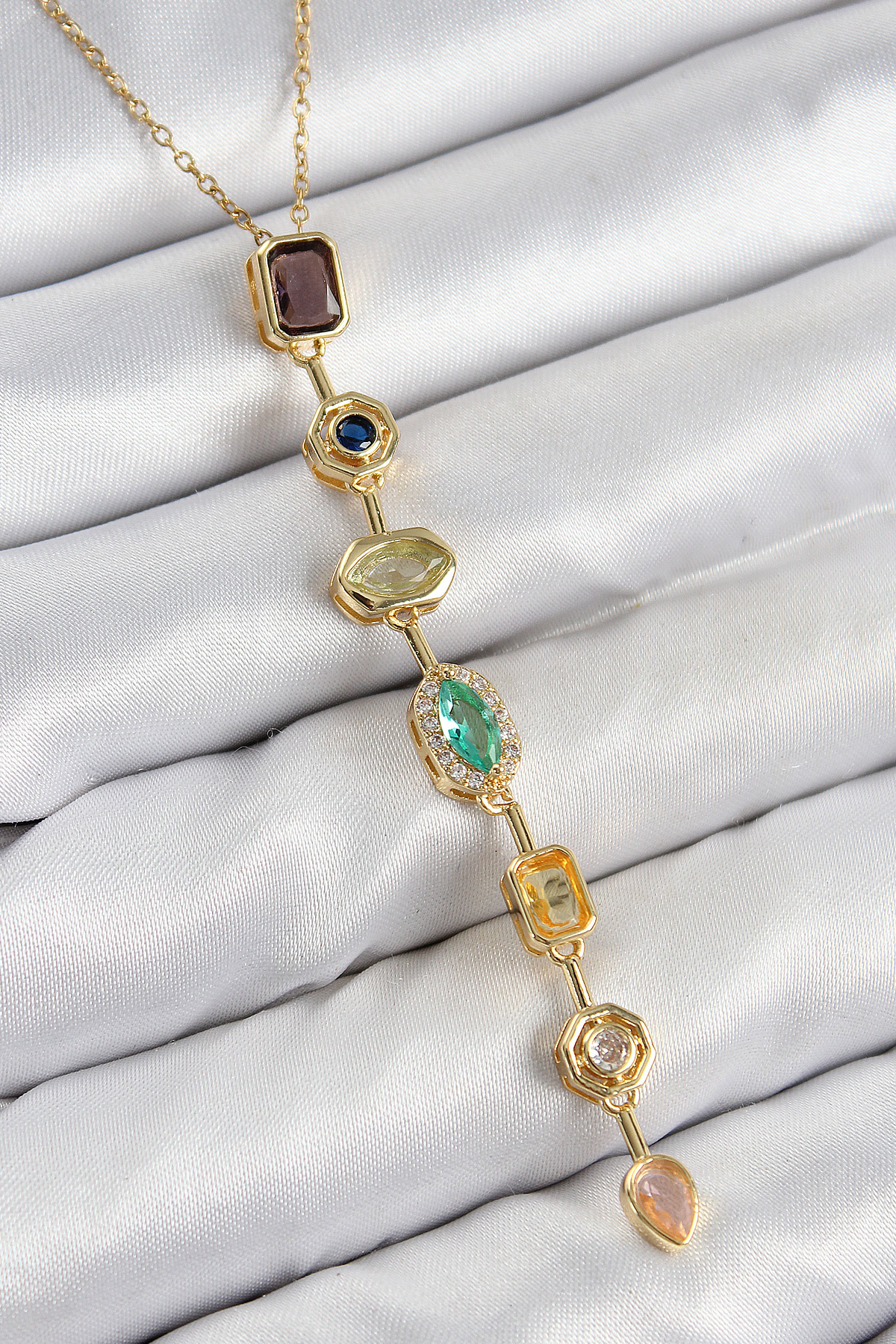 Pirinç Renkli Zirkon Taşlı Model Gold Renk 7 Element Kadın Y Kolye - 264659