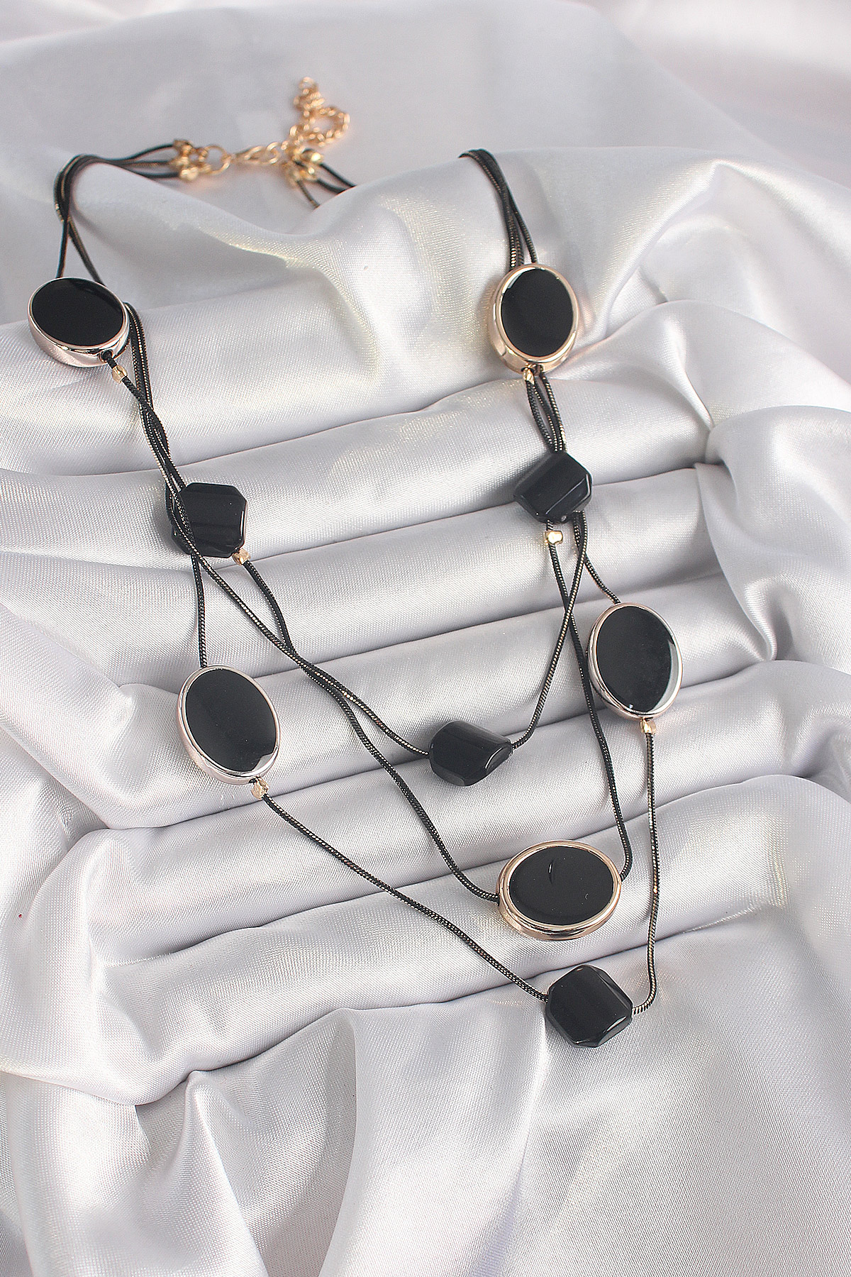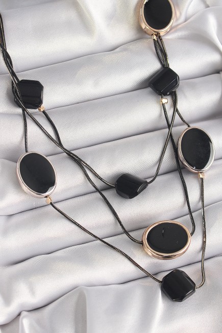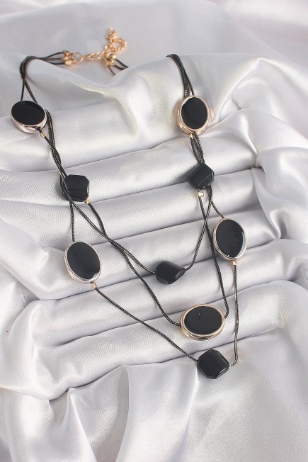 Pirinç Siyah Renk Zincir Kristal Taşlı Kadın Kolye - 259497