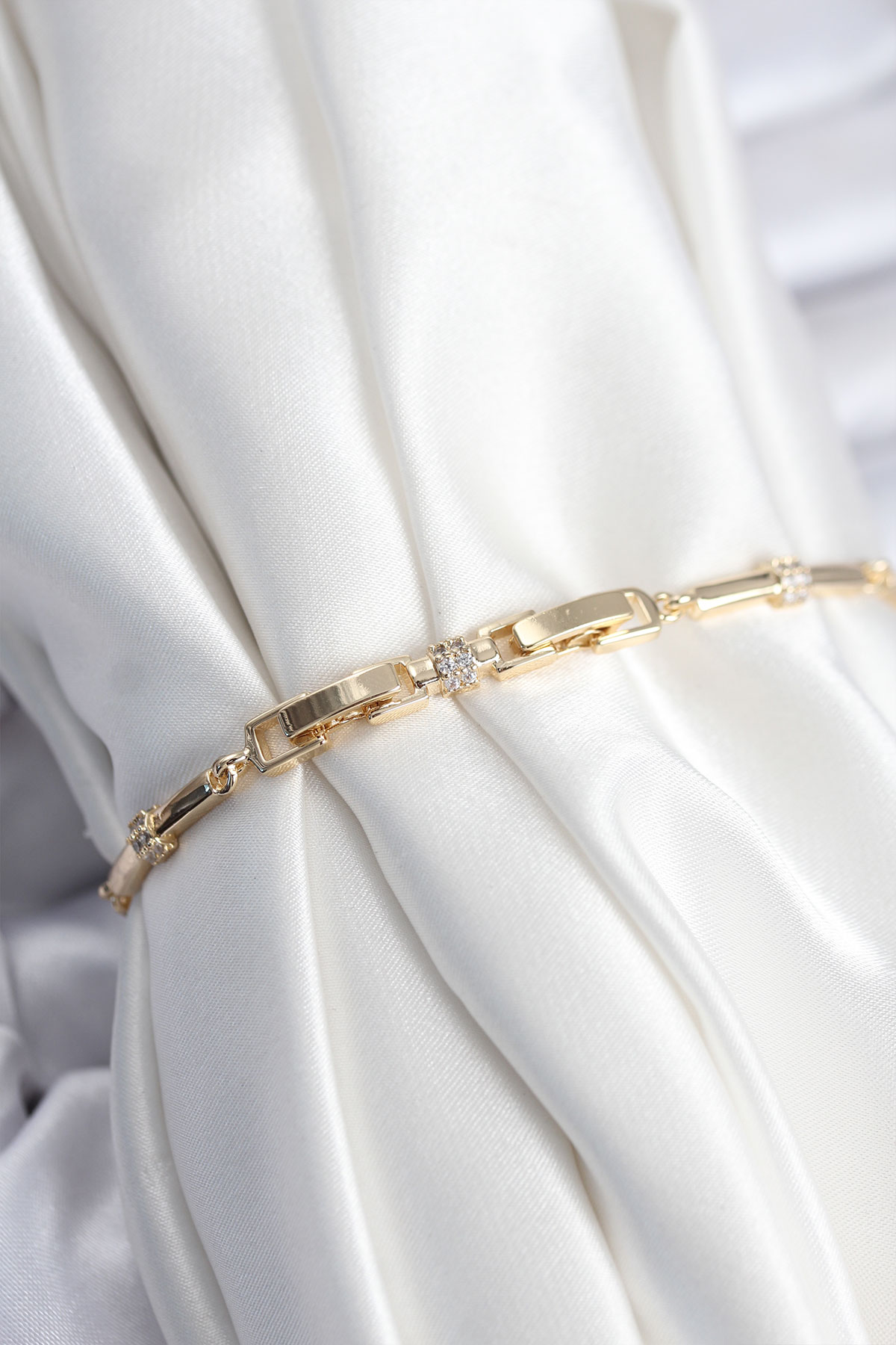 Pirinç VIP Seri Gold Renk Parçalı Model Zirkon Taşlı Kadın Bileklik - 265726