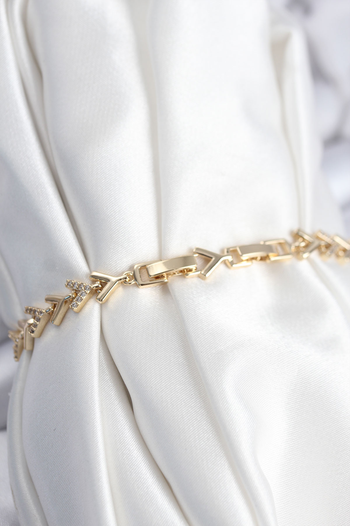 Pirinç VIP Seri Gold Zirkon Taşlı Balık Sırtı Model Kadın Bileklik - 265706