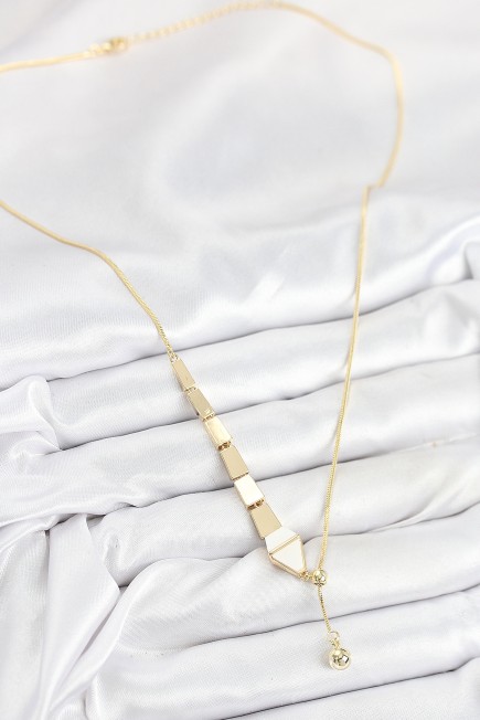 Pirinç Yılan Model Gold Renk Asansörlü Kadın Kolye - 265575