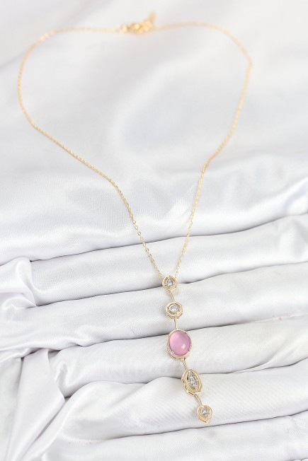 Pirinç Zincir Pembe Gold Renk Zirkon Taşlı Y Kolye - 265577