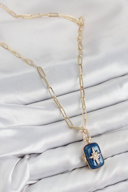 Pirinç Zirkon Taşlı Açılabilir Kutup Yıldızı Model Gold Renk Kadın Kolye - 264650