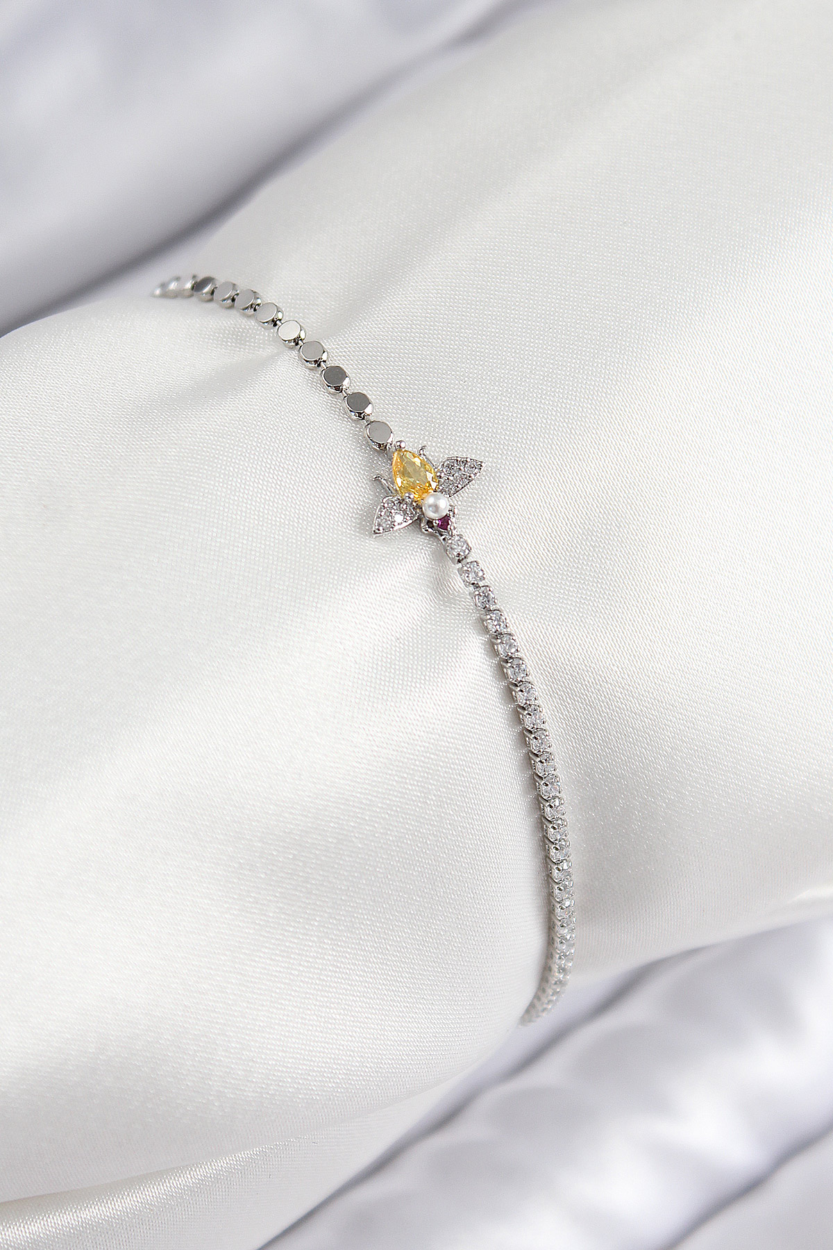 Pirinç Zirkon Taşlı Arı Model Ezme Zincir Gümüş Renk Kadın Bileklik - 264474