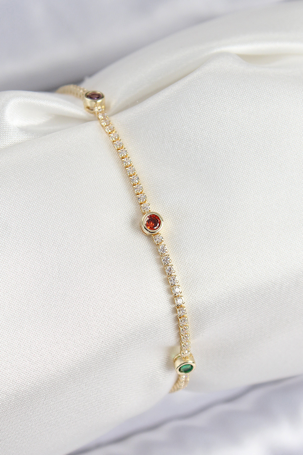 Pirinç Zirkon Taşlı Asorti Model Gold Renk Kadın Bilekilk - 264694