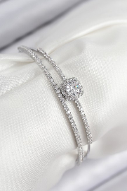Pirinç Zirkon Taşlı Baget Model Gümüş Renk Kadın Bileklik - 265534