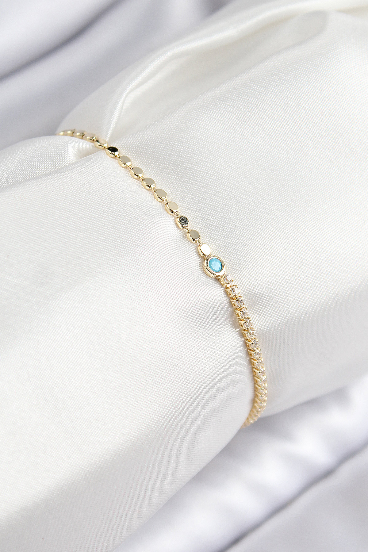Pirinç Zirkon Taşlı Boncuk Model Ezme Zincir Gold Renk Kadın Bileklik - 264475