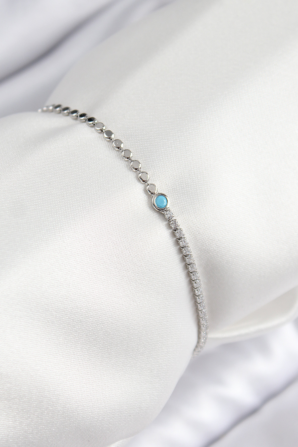 Pirinç Zirkon Taşlı Boncuk Model Ezme Zincir Gümüş Renk Kadın Bileklik - 264476