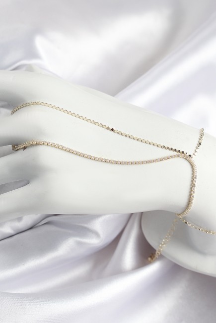 Pirinç Zirkon Taşlı Ezme Zincir Model Gold Renk Kadın Şahmeran - 264436