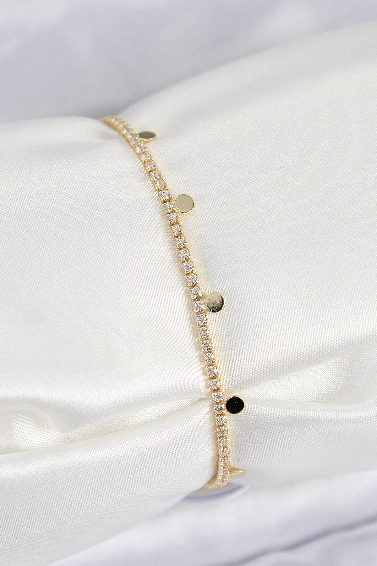 Pirinç Zirkon Taşlı Ezme Zincirli Sıralı Model Gold Renk Kadın Bilekilk - 264685