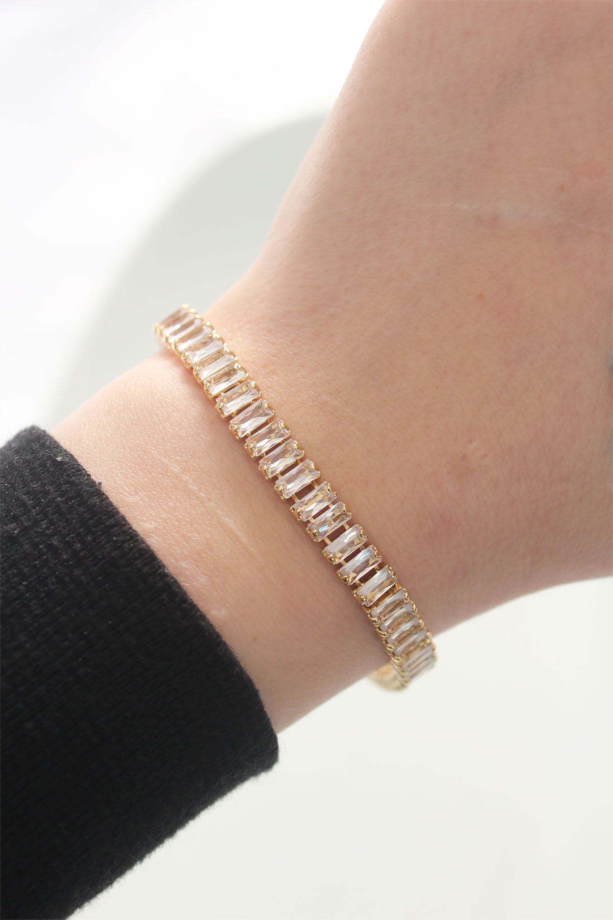 Pirinç Zirkon Taşlı Gold Renk Su Yolu Bileklik - 254737