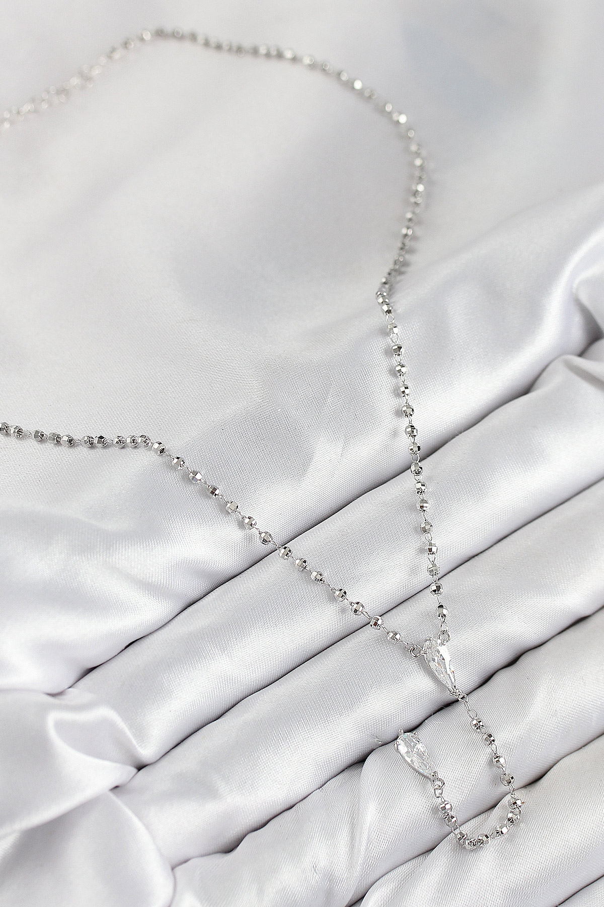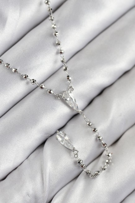 Pirinç Zirkon Taşlı Gümüş Renk Kadın Y Kolye - 265244