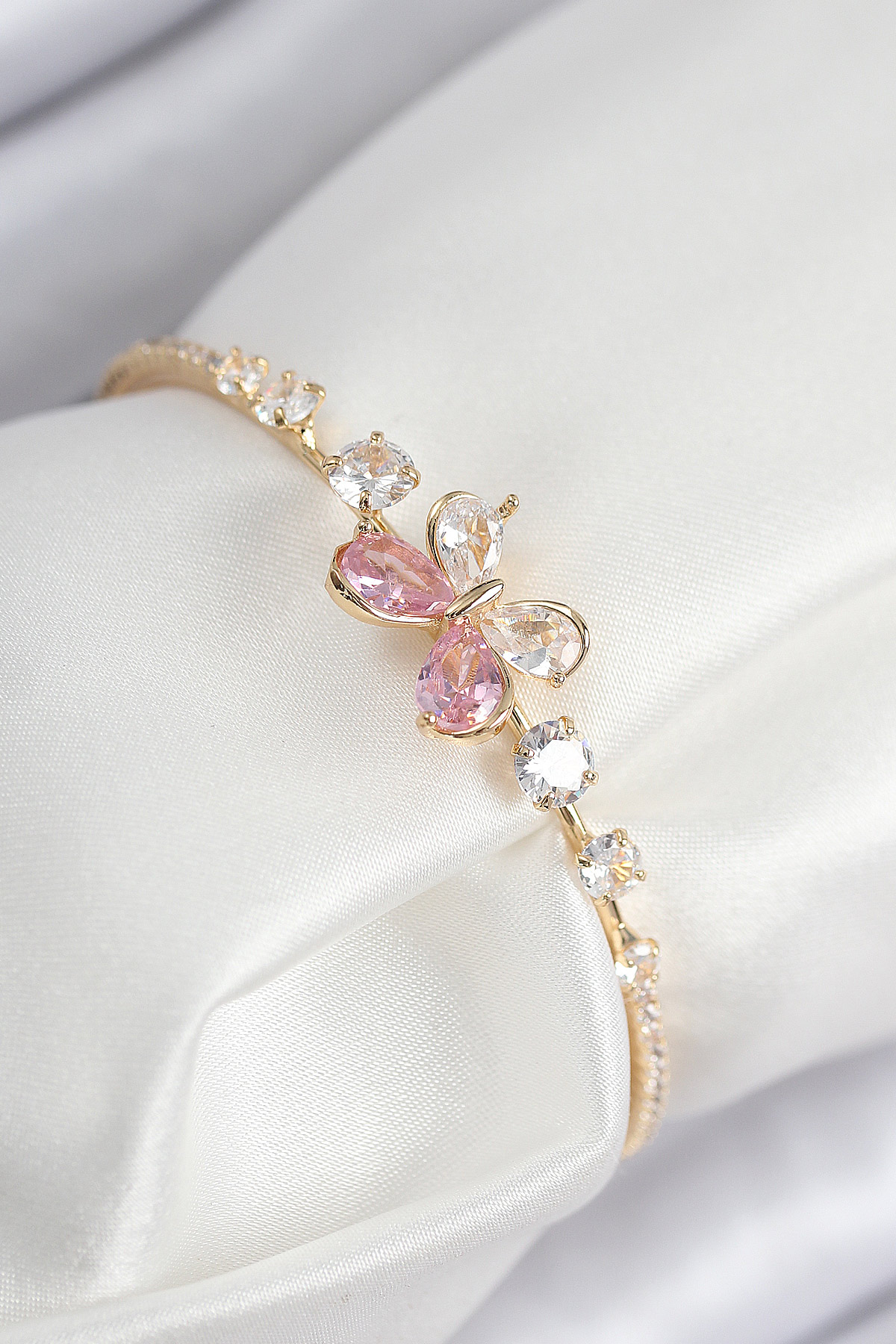 Pirinç Zirkon Taşlı Kelebek Model Gold Renk Kadın Bileklik - 265515