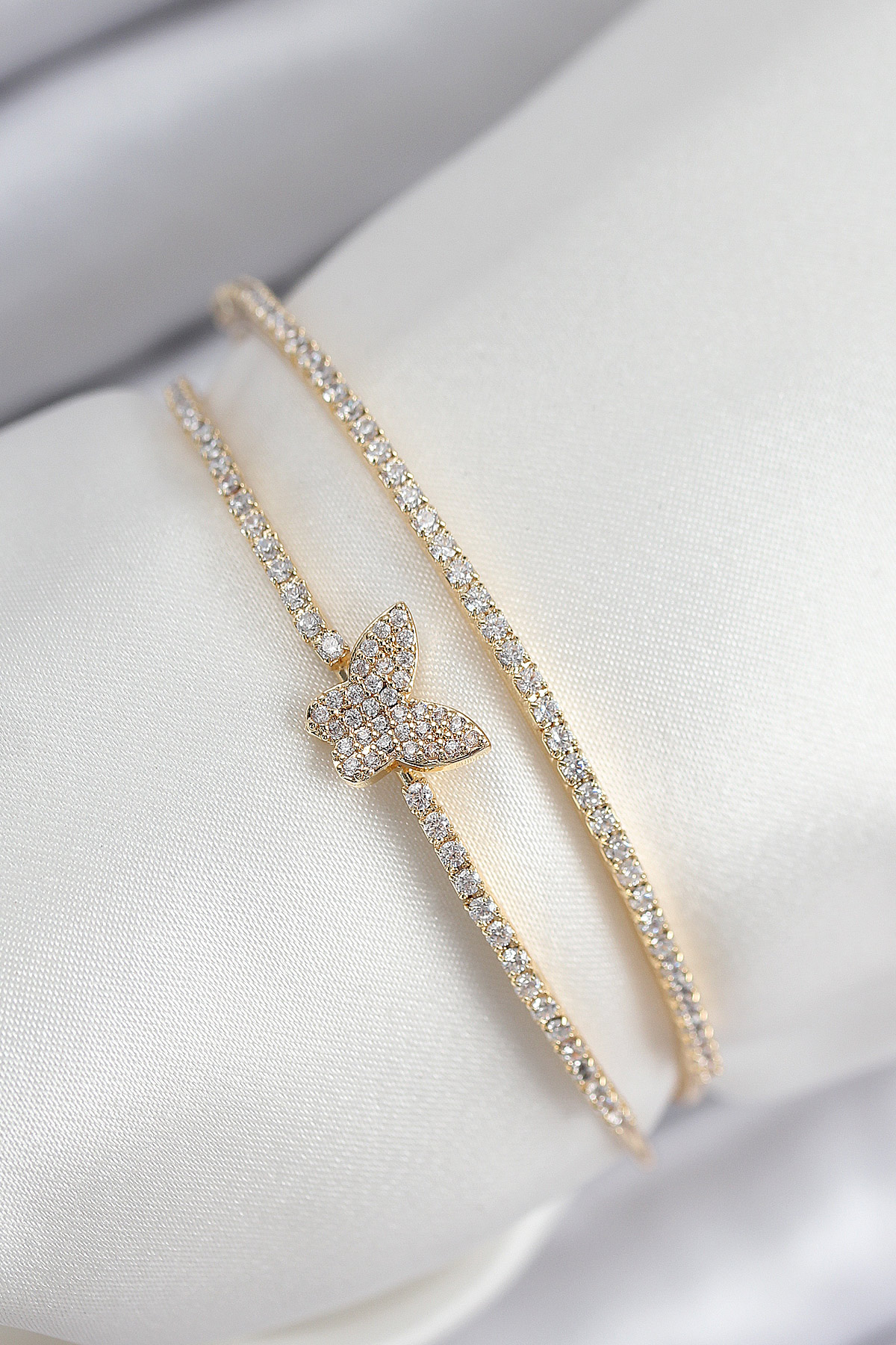 Pirinç Zirkon Taşlı Kelebek Model Gold Renk Kadın Bileklik - 265553