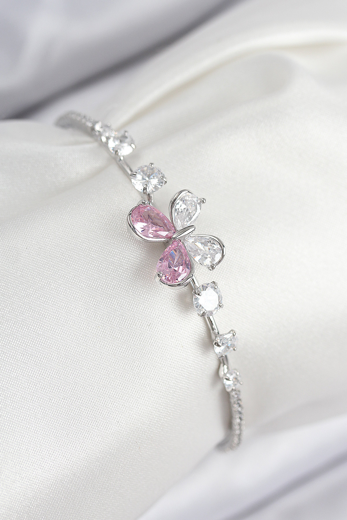 Pirinç Zirkon Taşlı Kelebek Model Gümüş Renk Kadın Bileklik - 265516