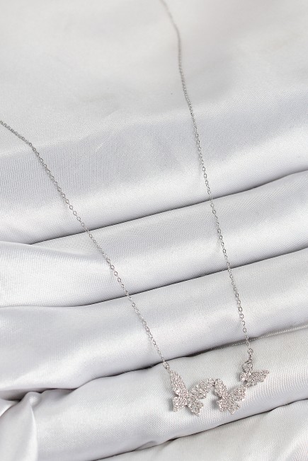 Pirinç Zirkon Taşlı Kelebek Model Gümüş Renk Kadın Kolye - 264645
