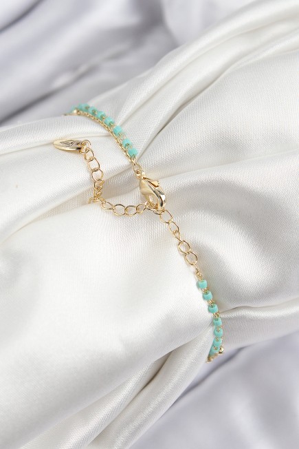 Pirinç Zirkon Taşlı Mavi Boncuklu Model Gold Renk Kadın Bileklik - 264477