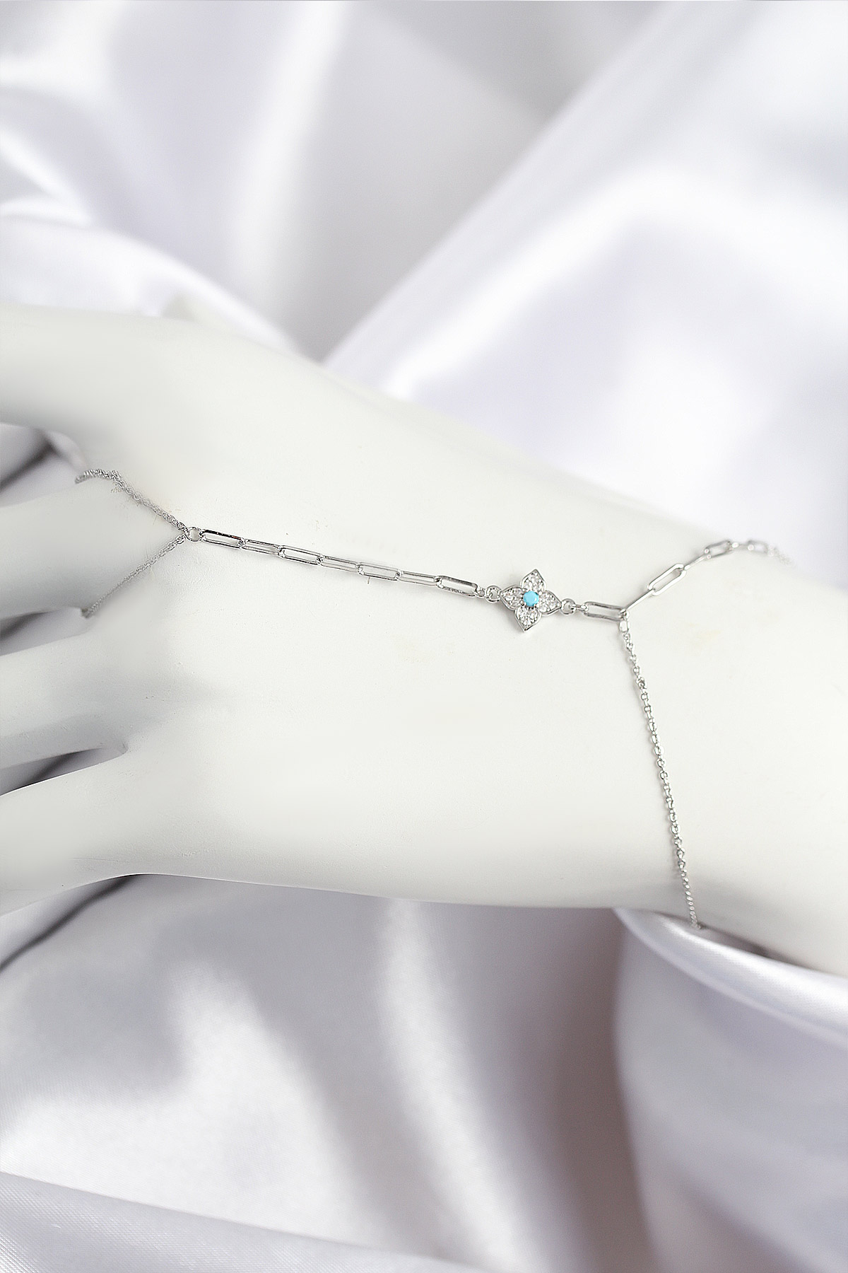 Pirinç Zirkon Taşlı Mavi Boncuklu Yonca Model Gümüş Renk Şahmeran - 265219