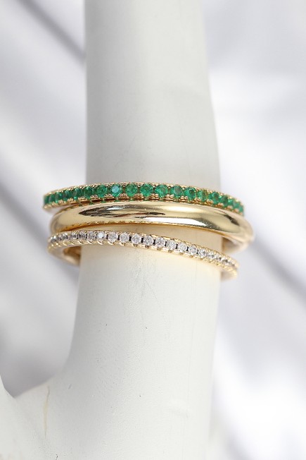 Pirinç Zirkon Taşlı Mix Renk 3'Lü Kadın Yüzük - 265203