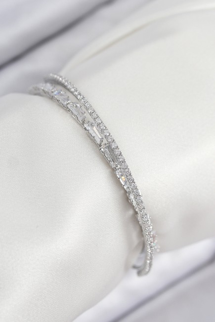 Pirinç Zirkon Taşlı Su Yolu Model Gümüş Renk Kadın Bileklik - 265544