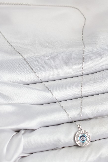 Pirinç Zirkon Taşlı Su Yolu Nazar Model Gümüş Renk Kadın Kolye - 264649