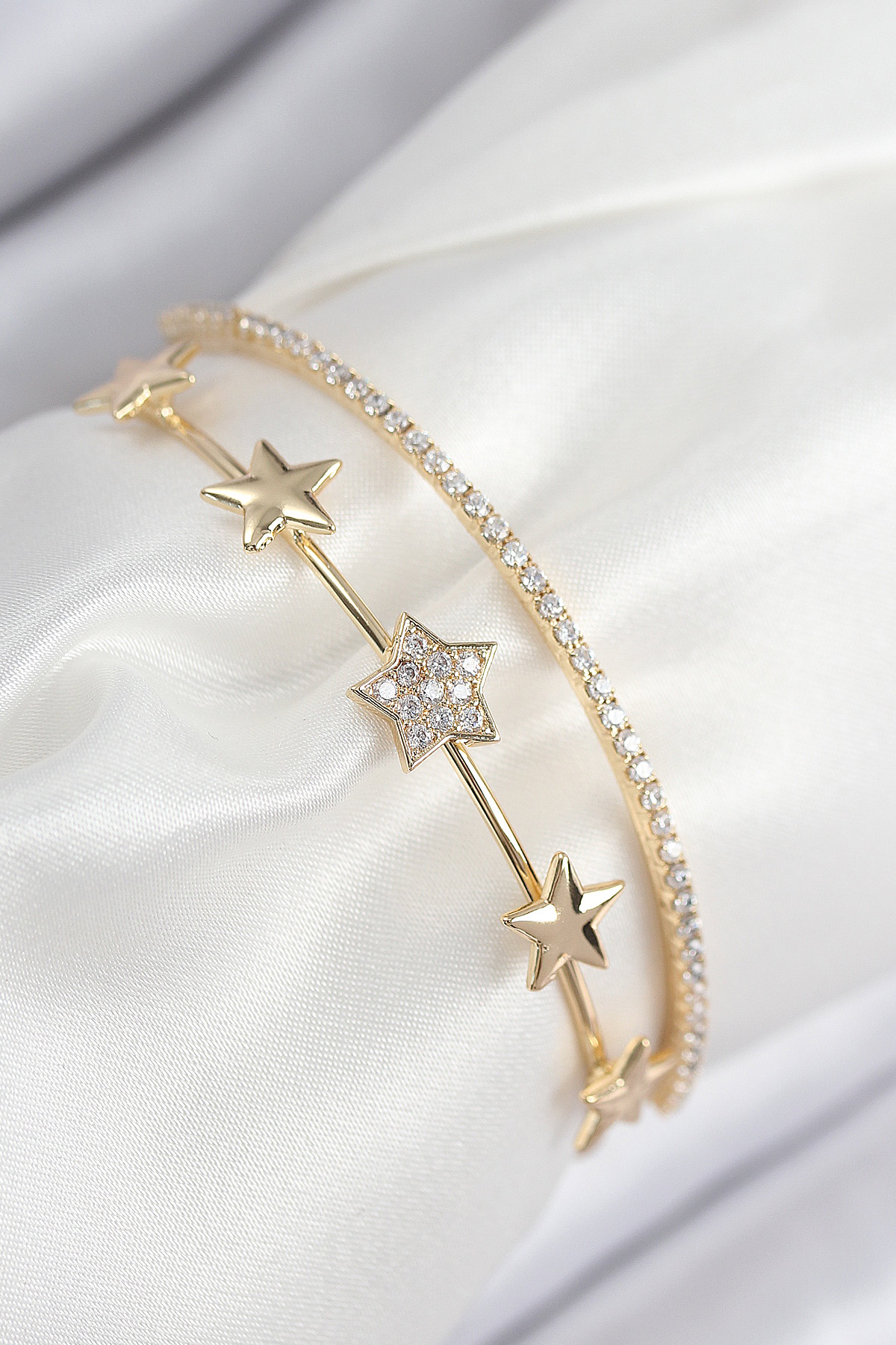 Pirinç Zirkon Taşlı Yıldız Model Gold Renk Kadın Bileklik - 265539