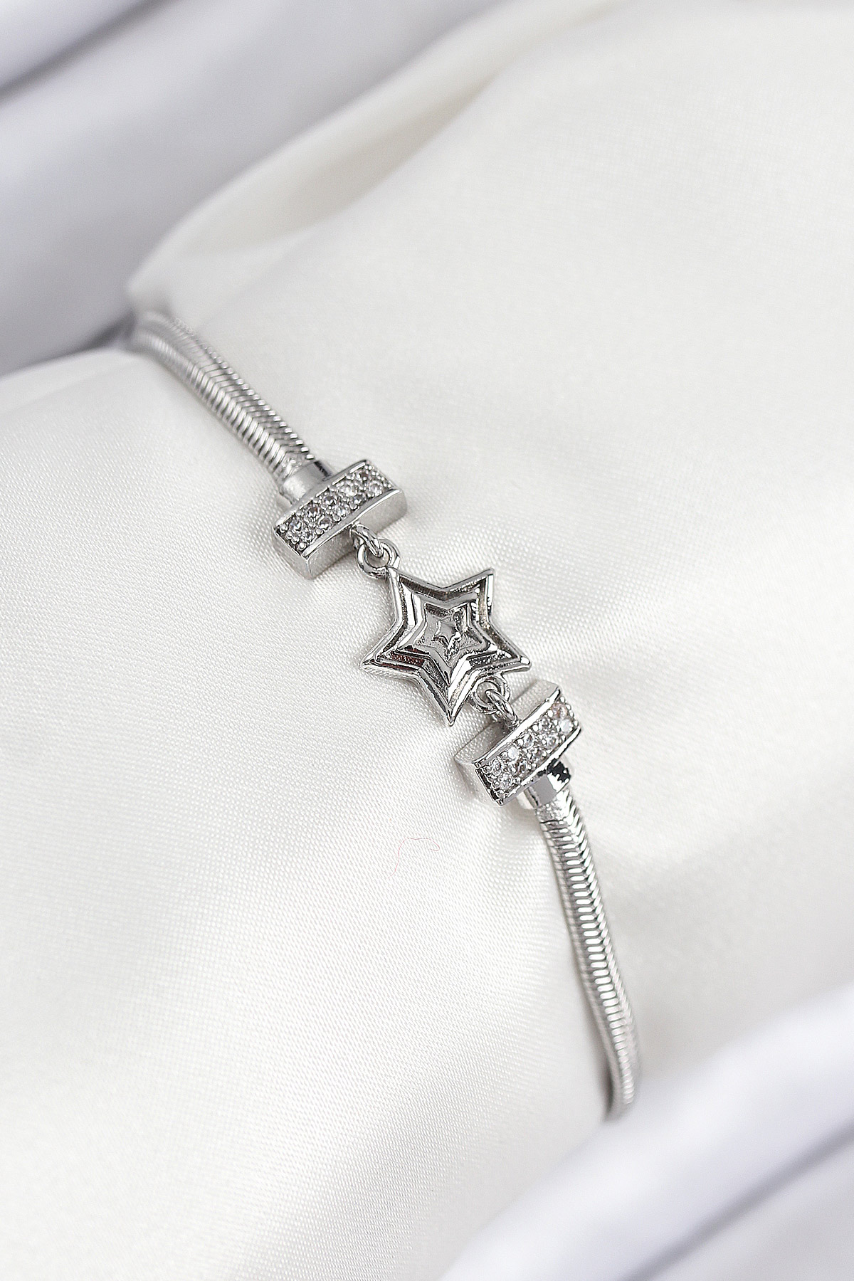 Pirinç Zirkon Taşlı Yıldız Model Gümüş Renk Kadın Bileklik - 265564