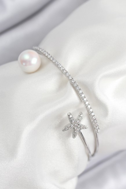 Pirinç Zirkon Taşlı Yıldız Ve İnci Model Gümüş Renk Kadın Bileklik - 265546