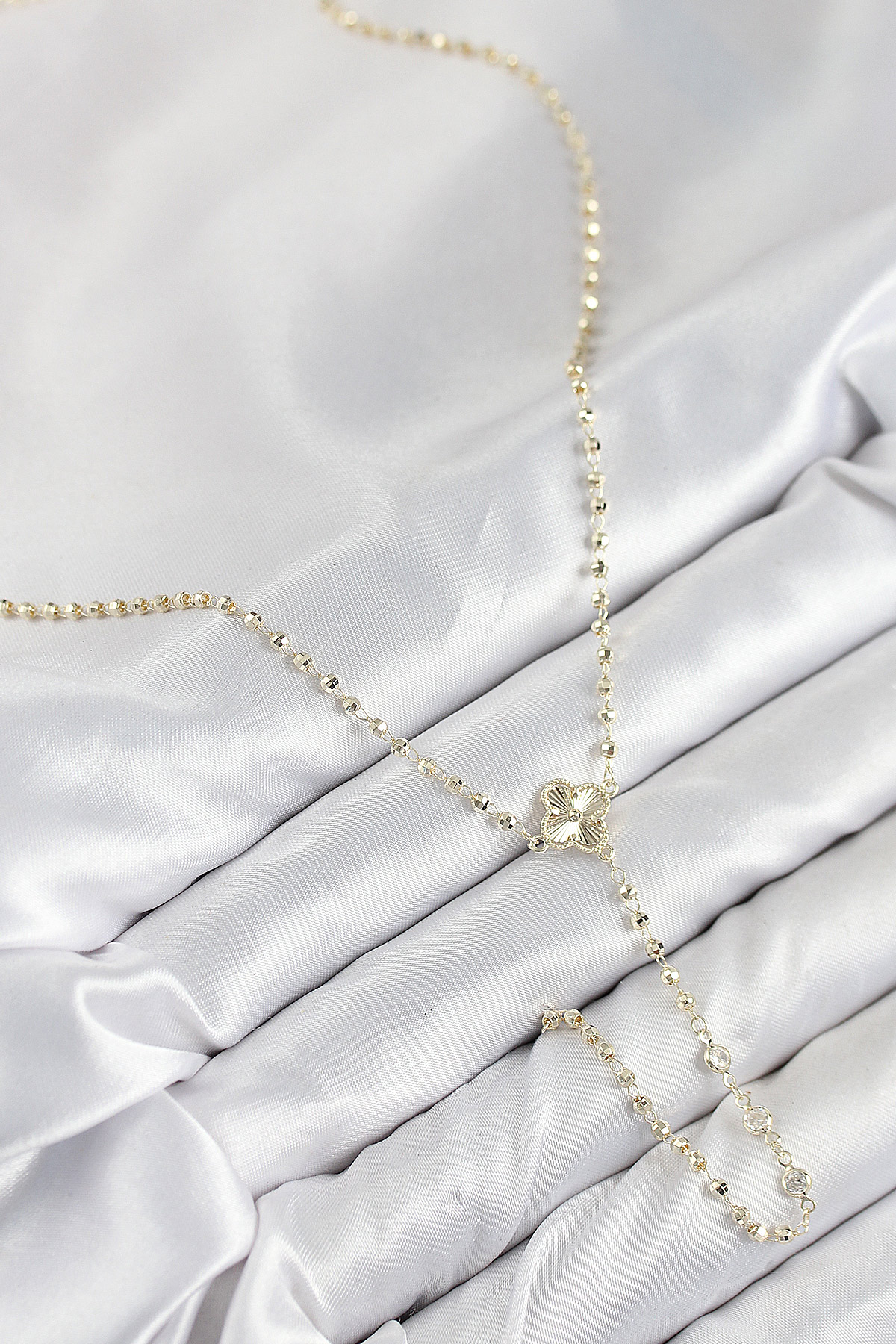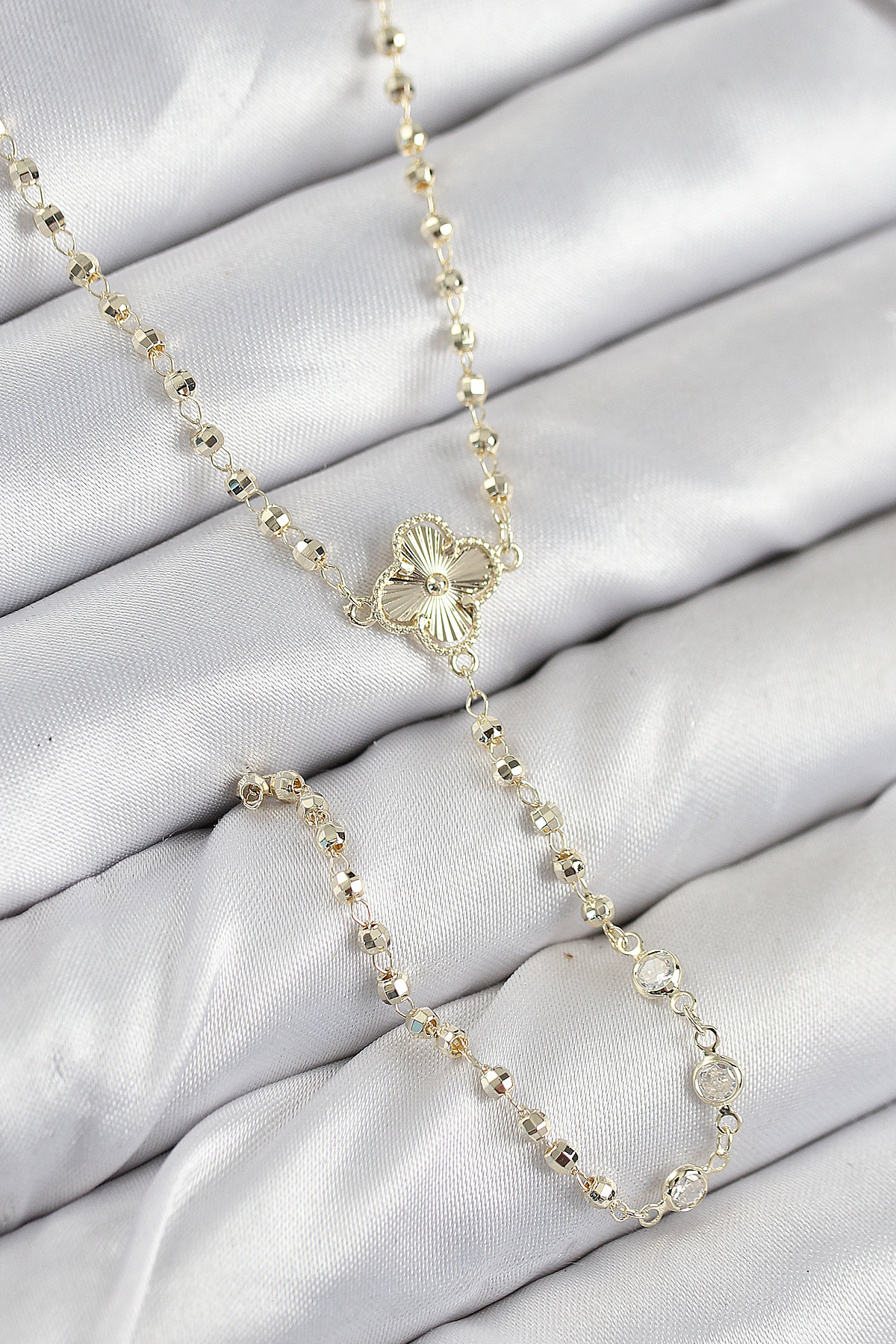 Pirinç Zirkon Taşlı Yonca Model Gold Renk Kadın Y Kolye - 265247