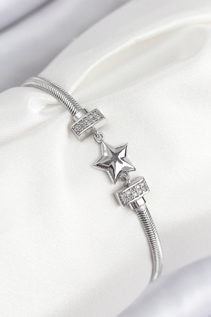 Pirinç Zirkon Taşlı Yonca Model Gümüş Renk Kadın Bileklik - 265560