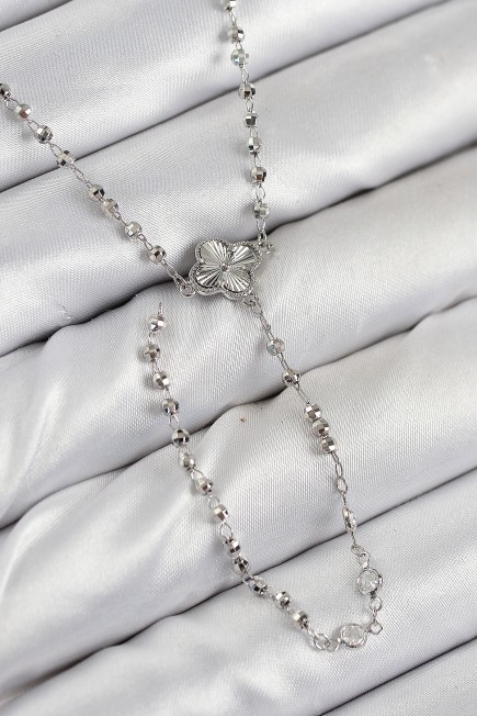 Pirinç Zirkon Taşlı Yonca Model Gümüş Renk Kadın Y Kolye - 265246