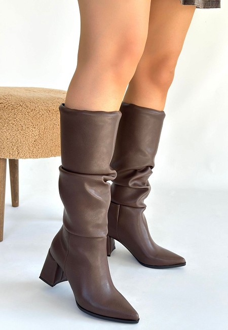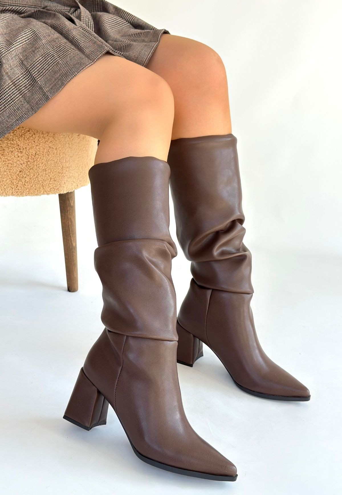 Pitay Kahverengi Cilt Körüklü Topuklu Çizme - 266068