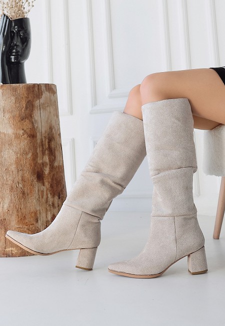 Pitay Bej Süet Topuklu Çizme - 257690