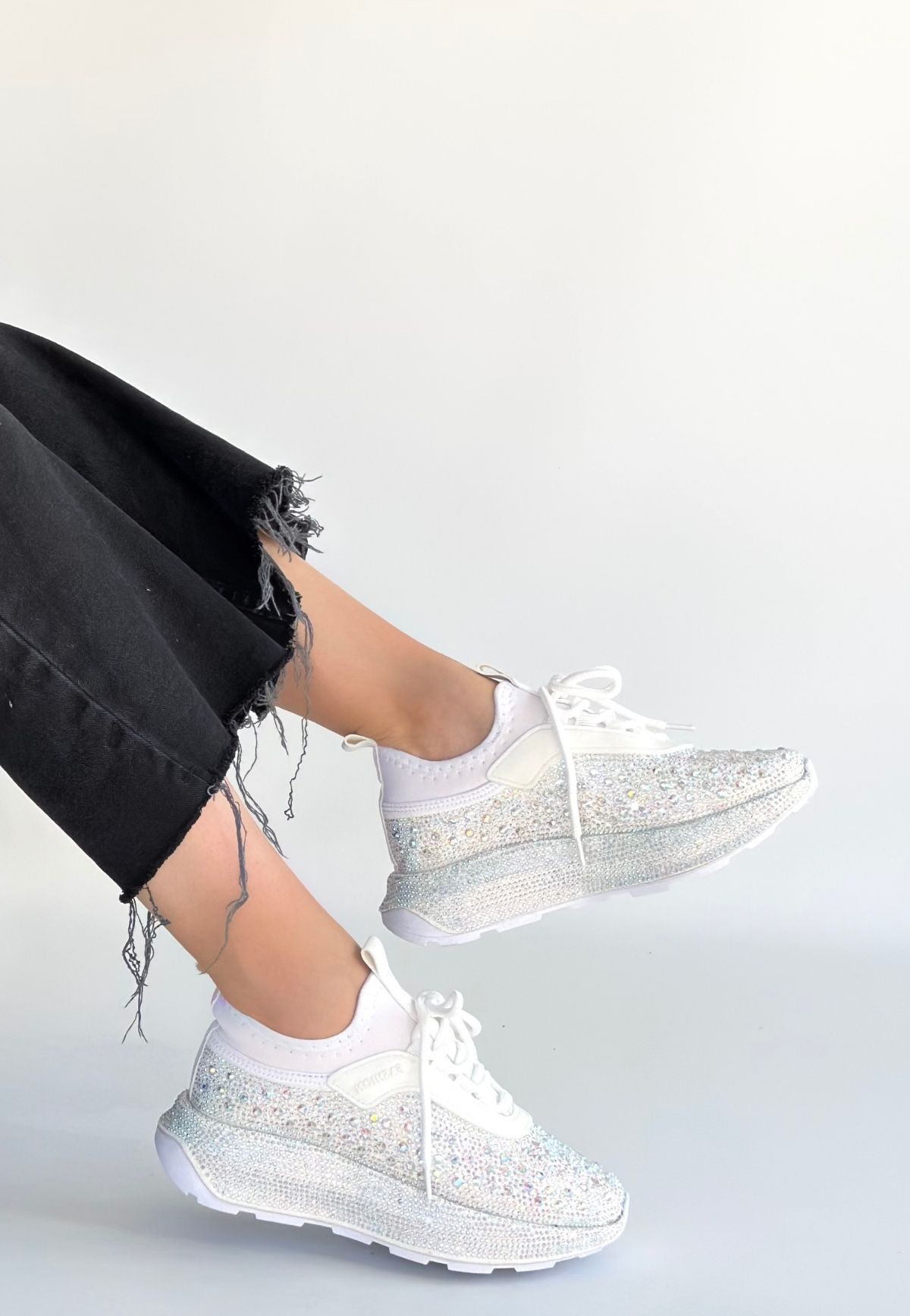 Rimay Beyaz Cilt Boncuk İşlemeli Spor Ayakkabı - 267300