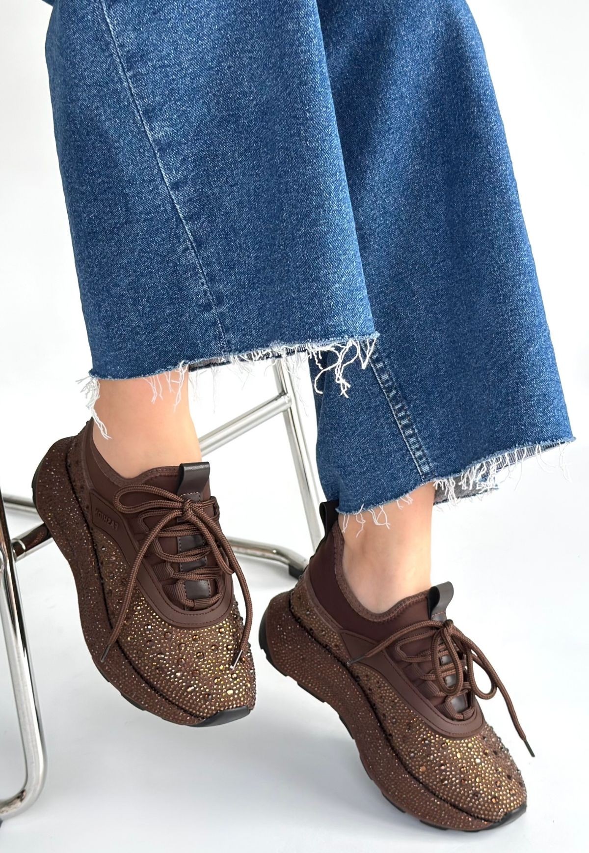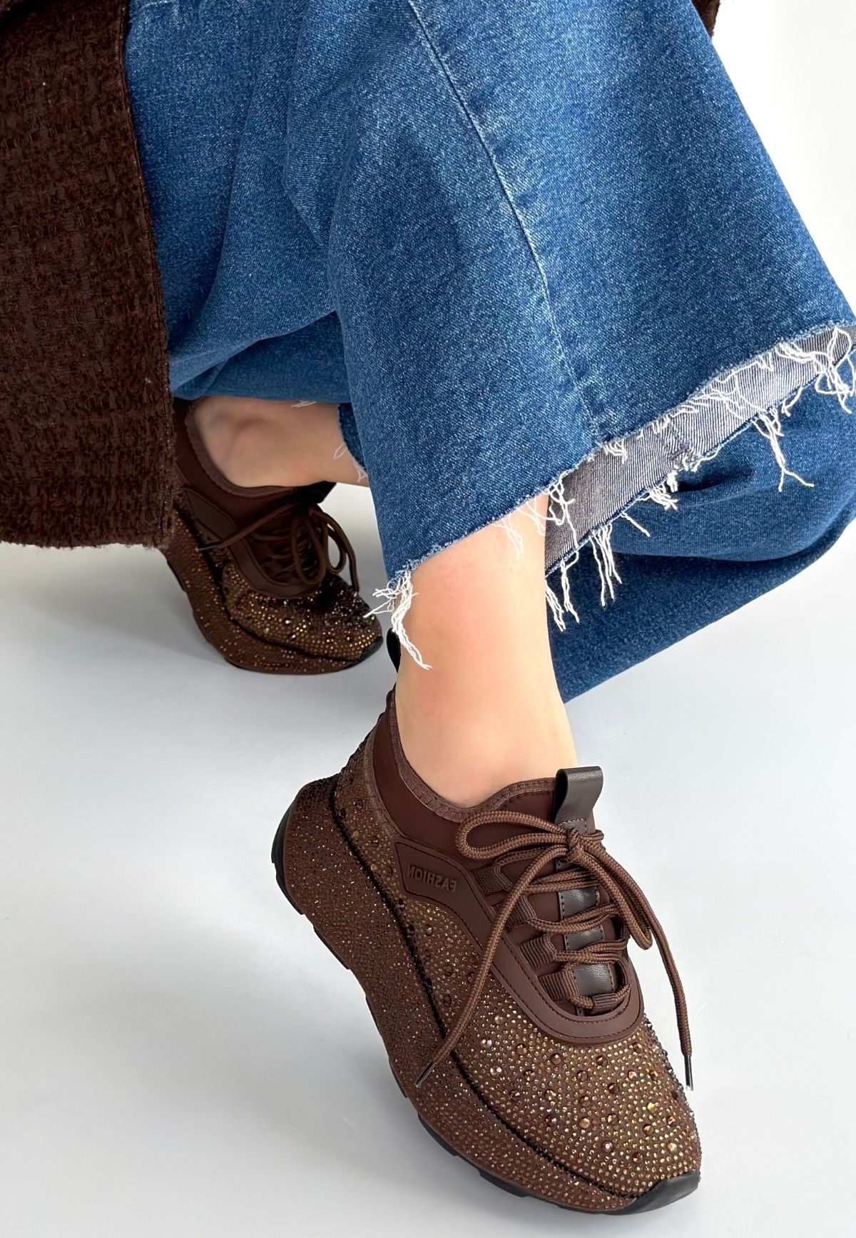 Rimay Kahverengi Cilt Boncuk İşlemeli Spor Ayakkabı - 267298