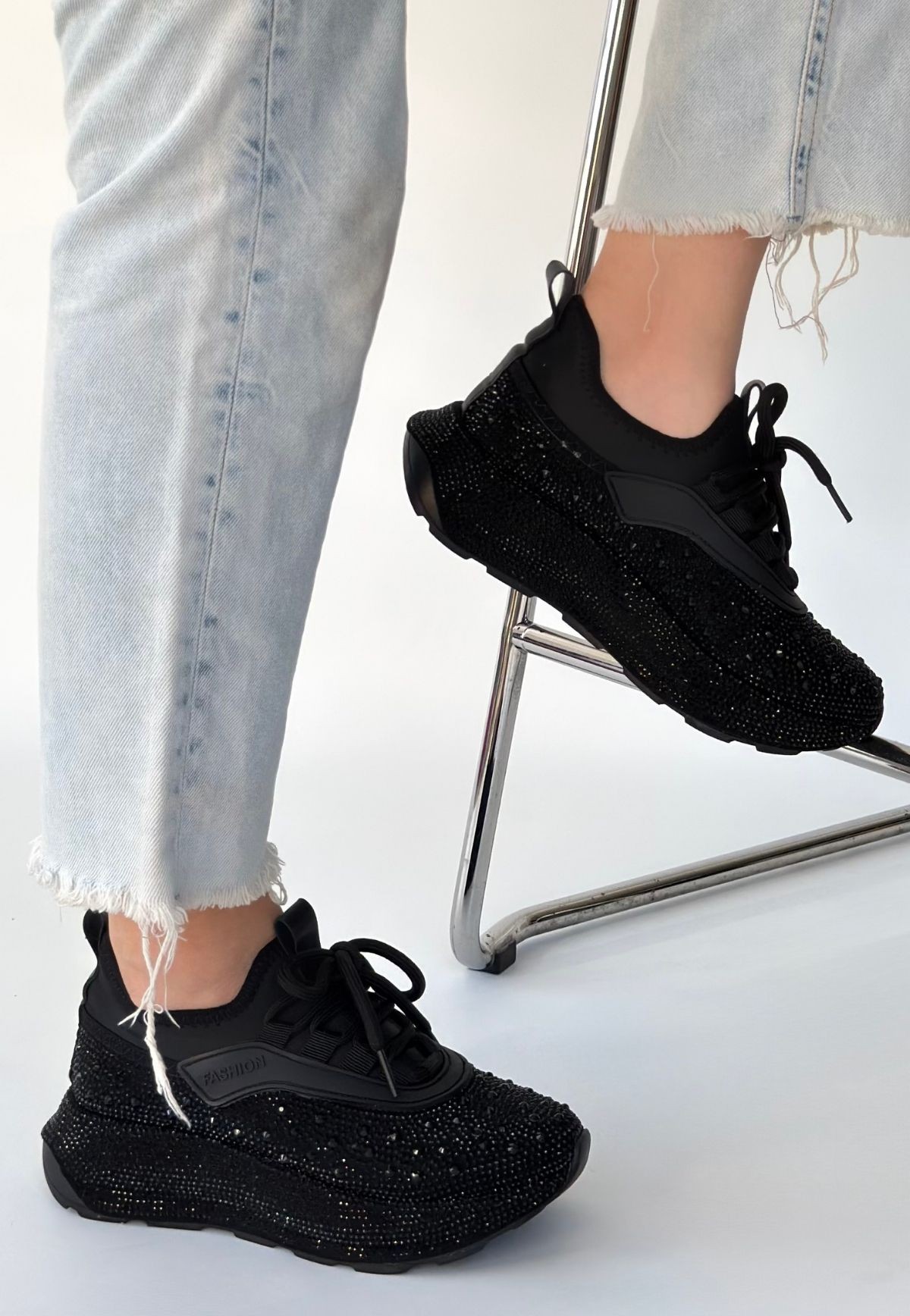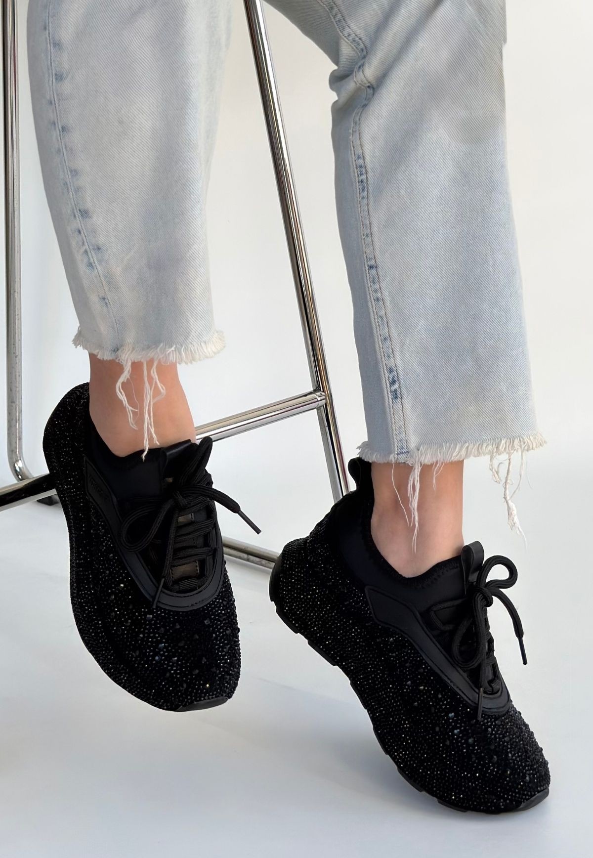 Rimay Siyah Cilt Boncuk İşlemeli Spor Ayakkabı - 267299