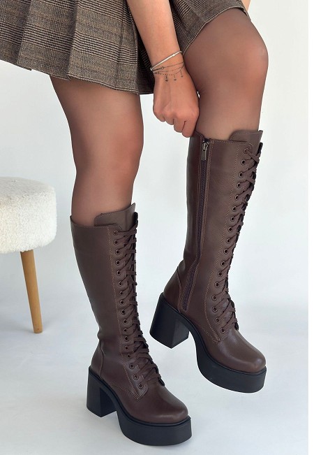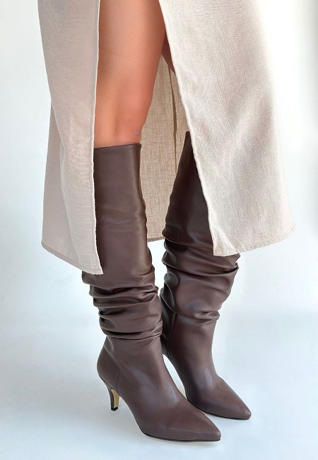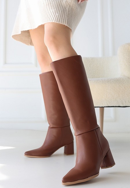 Roksa Taba Cilt Topuklu Çizme - 257760
