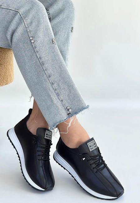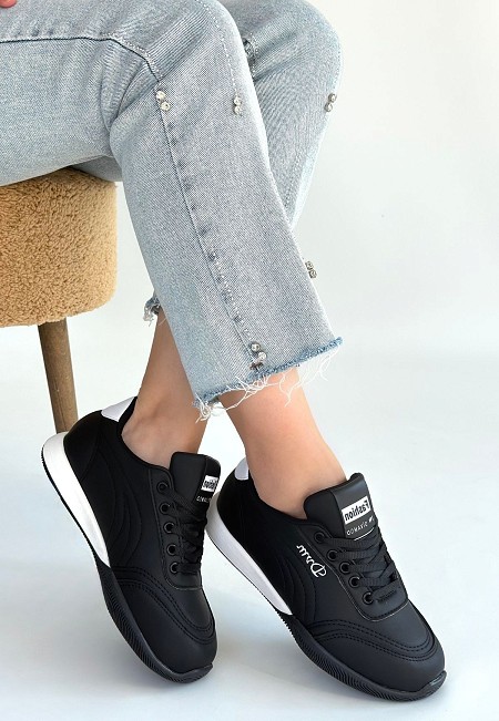 Romy Siyah Cilt Bağcıklı Spor Ayakkabı - 253332