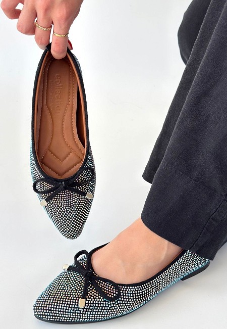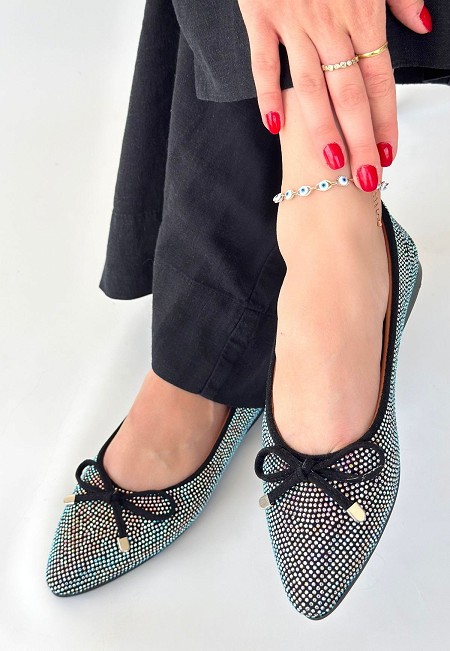 Sarra Siyah Saten İşlemeli Babet Ayakkabı - 265371