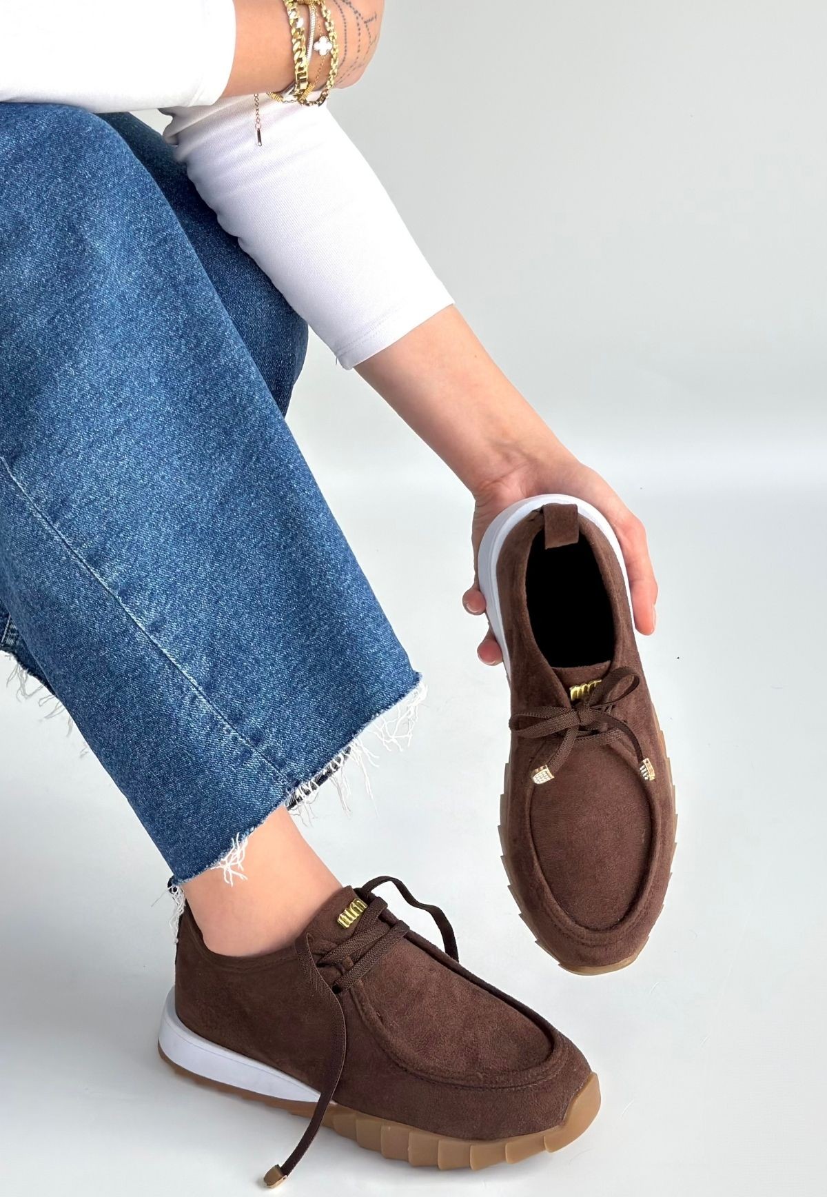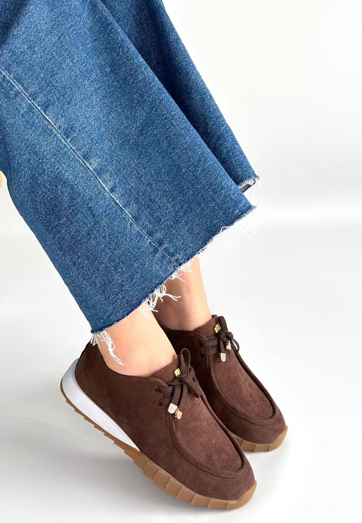 Sier Kahverengi Süet Bağcıklı Spor Ayakkabı - 267273