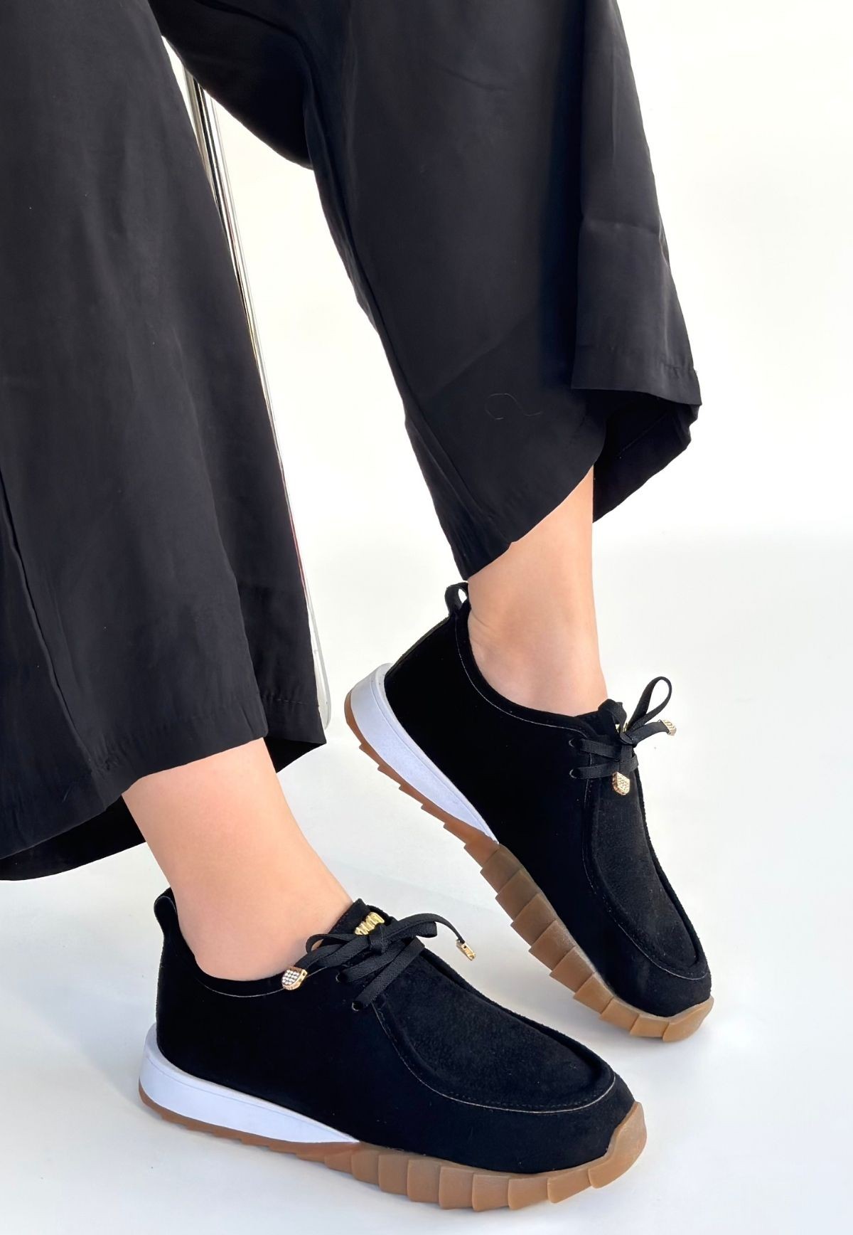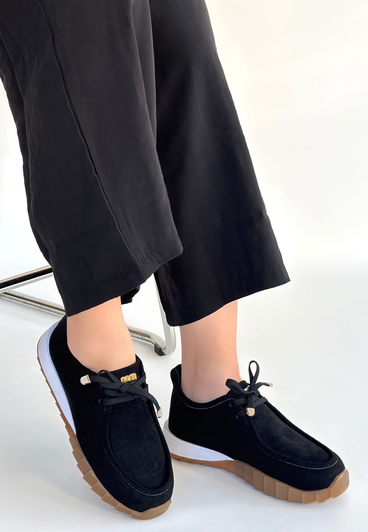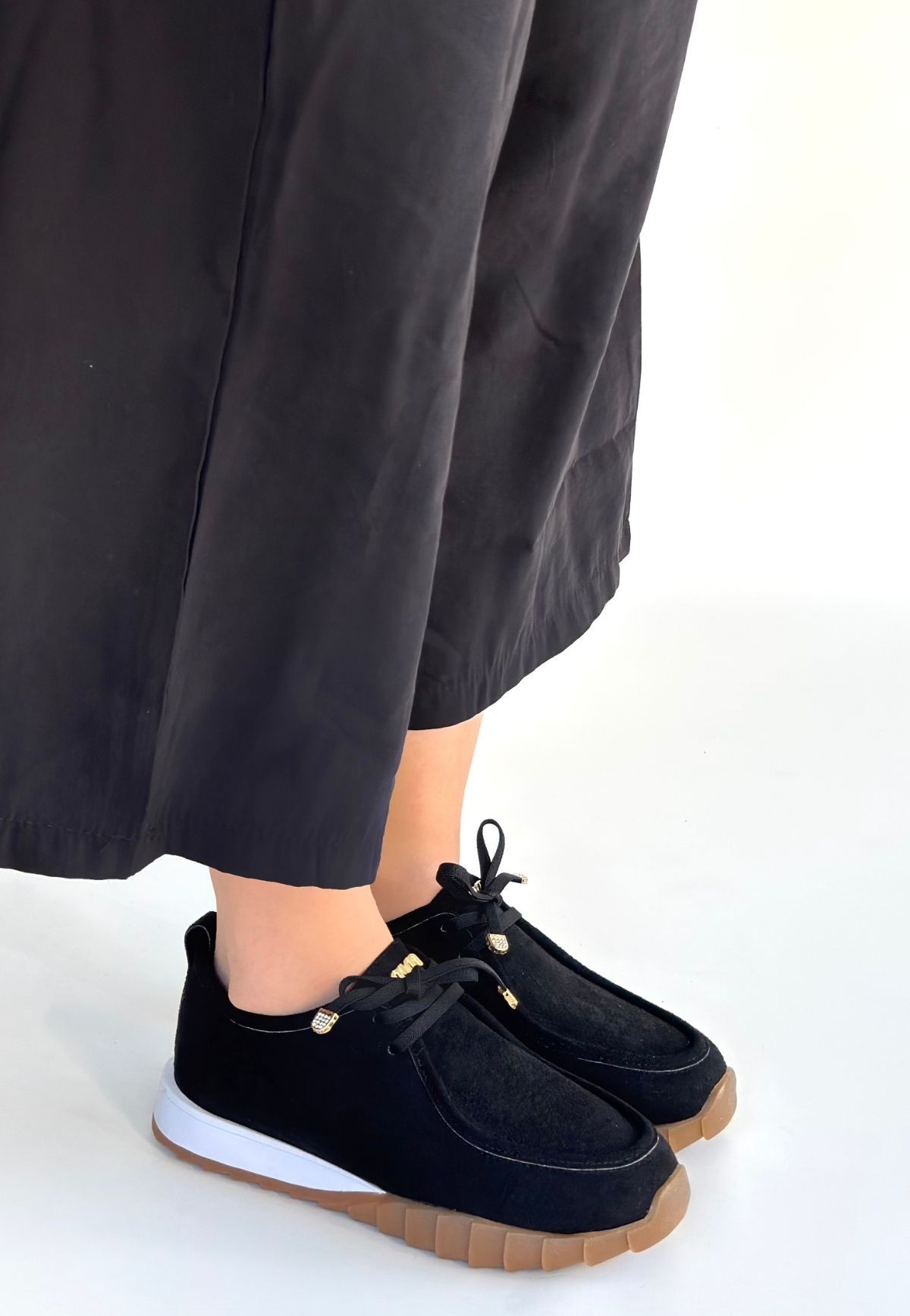 Sier Siyah Süet Bağcıklı Spor Ayakkabı - 267272