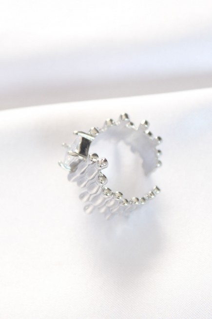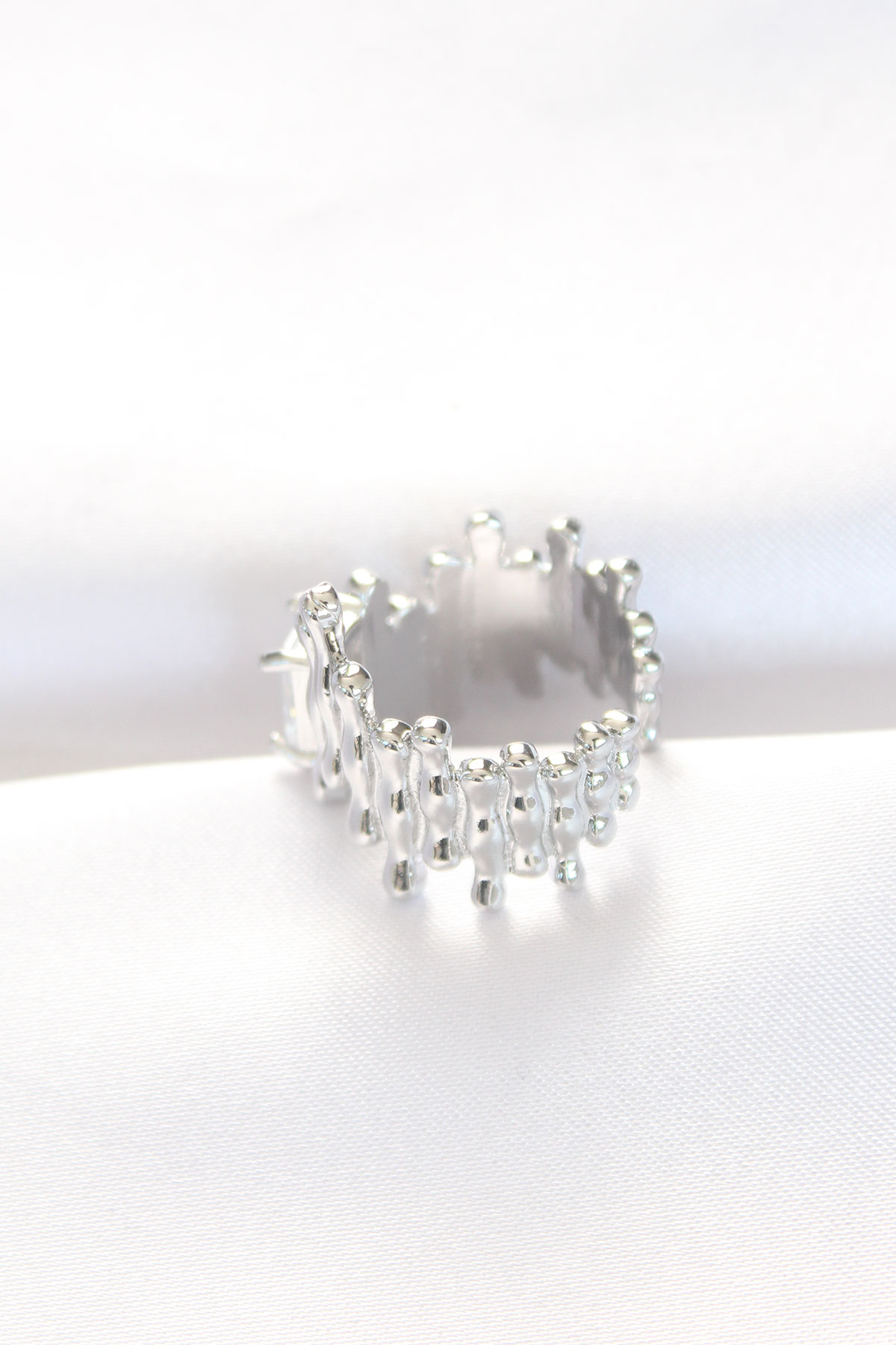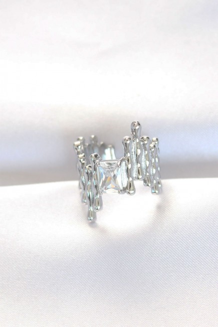Silver Renk Tırtıklı Kalın Baget Taş Tasarım Ayarlanabilir Yüzük - 254845